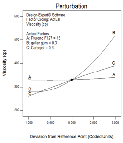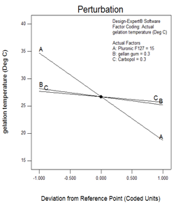 Moreover, for gelation temperature, the concentration of polymer pluronic was determined as the significant model term, whereas for viscosity concentration of gellan-gum was found to be significant as compared to the recent investigation [20].