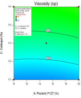 Fig. 11: Contour plot of the effect of pluronic F-127 (A) and carbopol (C) on the viscosity