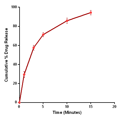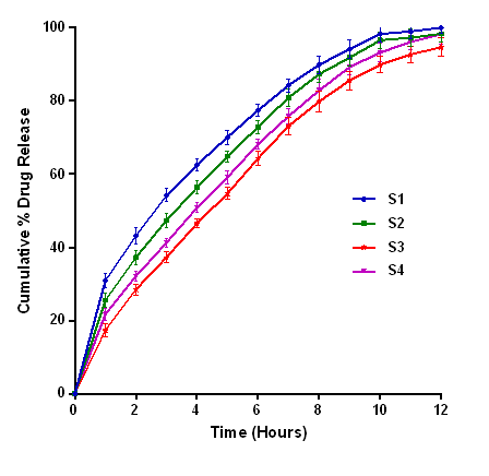 The in vitro dissolution studies were carried out in USP type II apparatus (LABINDIA DS8000+) at 50 rpm using simulated gastric fluid as dissolution medium (900 ml) maintained at 37±0.5 °C. Drug release at different time interval was measured by UV-visible spectrophotometer at 212 nm. The release studies were conducted on six tablets in each batch; results were represented as a mean±SD.