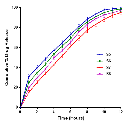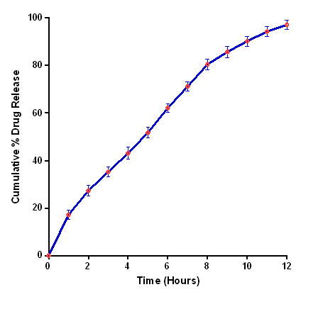 The release studies were conducted on six tablets, and the mean values were plotted versus time with SD.