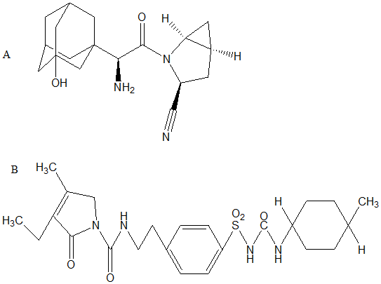 Fig. 1: Structure of, (A): Saxagliptin; (B): Glimepiride