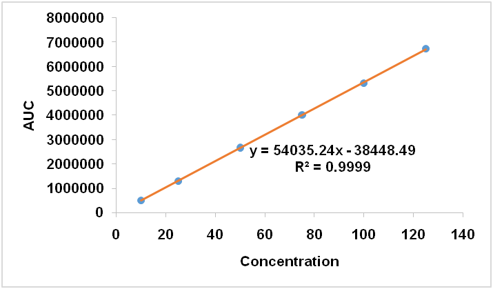 Fig. 6: Diclofenac sodium calibration curve using HPLC