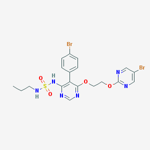 Macitentan is chemically a {[5-(4-bromophenyl)-6-{2-[(5-bromo-pyrimidin-2-yl)oxy]ethoxy}pyrimidin-4-yl]sulfamoyl}(propyl) amine) with molecular weight of 588.273g/mol [1].