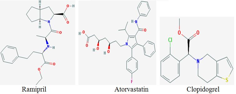 Fig. 1: Chemical structure of (a) Ramipril (b) Atorvastatin (c) Clopidogrel