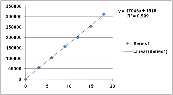 From the above stock solutions, 1 ml was pipette out in to a 10 ml volumetric flask and then made up to the final volume with diluents and achieved concentrations 12, 24 and 180 µg/ml. Three injections were finished for each concentration and chromatographs were gained under the previously described liquid chromatographic conditions. The peak areas were plotted in opposition to the consequent concentrations to erect the calibration graphs.