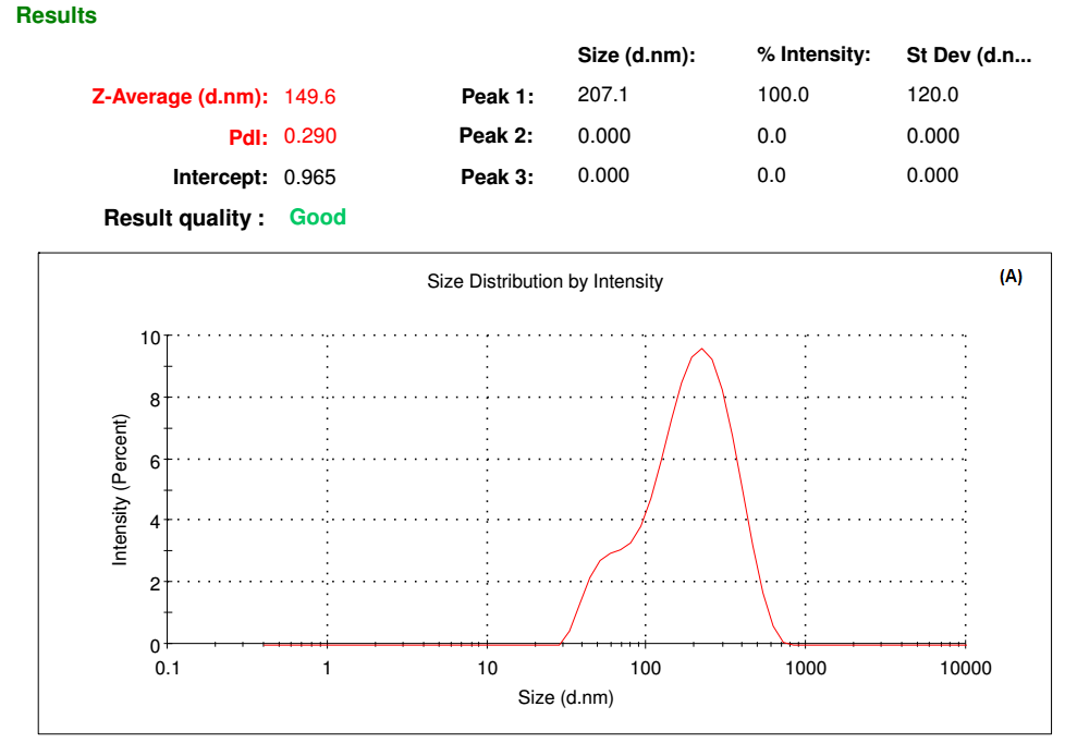 The mean droplet size (z average), polydispersity index (PDI) and ζ-potential of stable formulations were determined at 25 °C with a Zetasizer Nano-ZS dynamic light scattering apparatus (Malvern Instruments, UK). Each formulation was diluted with filtered (0.45 μm, Millipore) double distilled water before analysis. Size analysis was carried at 25 °C with an angle of detection of 90 °.
