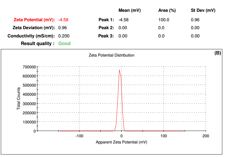 In agreement with P. Patil et al. (2007) [37], a slight increase in droplet size was observed for the TLS-loaded SEDDS. This can be attributed to the preferential dissolution of the drug in the interfacial film (formed by the surfactant and co-surfactant) that increases the interfacial tension. Moreover, the addition of the drug could induce surfactant aggregation, thus reducing its efficiency. The PDI values were below 0.5 indicated that the droplets were uniform in size. The ζ-potential is correlated to the electrostatic repulsion and aggregation of the droplets. High positive or negative ζ-potential values (higher electrostatic repulsive forces) arrest coalescence, thus enabling stability of the emulsions [38-40]. The negative charges were due to the presence of free fatty acids in the surfactant [19, 28]. The droplet sizes of all the optimized formulations except TF12 were below 250 nm suggested SMEDD formulations. Again among SMEDDS, the formulation TF9 incorporate high proportions of oil as compared to conventional SMEDD formulations where the later is prepared by incorporating a large amount of surfactant or surfactant-cosurfactant mixture (>70%). The droplet size of TF9 with telmisartan was found to be 150.72±3.64 nm (fig. 5) with PDI of 0.290. The zeta potential of the emulsion developed by TF9 was found to be -4.58±0.96 mV (fig. 6). The conductivity of the emulsion was 0.200 mS/cm, which means the emulsion was fine oil in water (conductivity>10 μS/cm) [27].