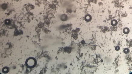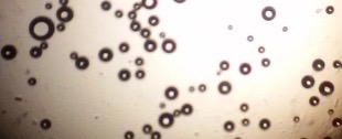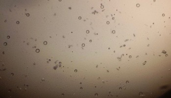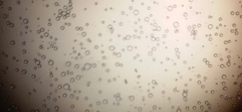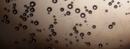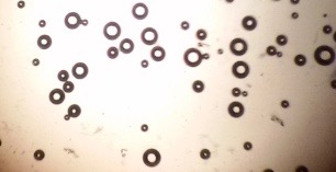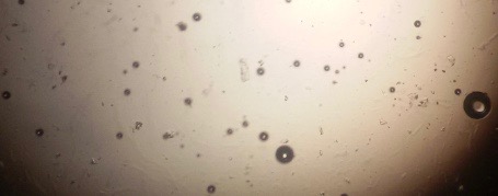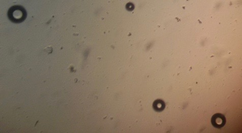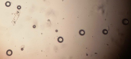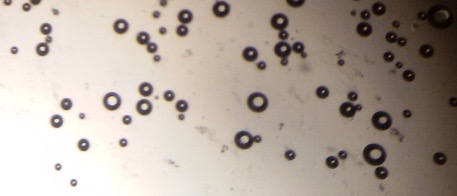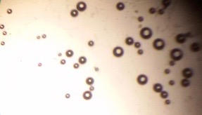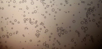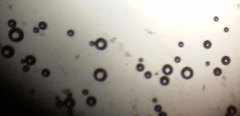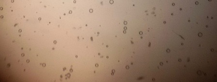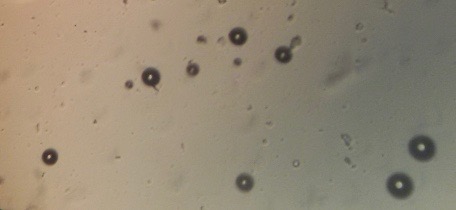 The optical photographs of all reconstituted proniosomal formulae are shown in fig. (1-28). The photographs revealed that the formed niosomes are unilamellar vesicles with a spherical shape and smooth surface. The vesicles were insular and separate without aggregation or lumping. Apparently, proniosomal formulae containing span 40 and span 60 yielded vesicles of large numbers with well-identified outline and core which will affect the entrapment efficiency of loaded drug directly. However proniosomal formulae containing span 20 and span 80 produced small numbers of vesicles with a slightly different outline. This may be due to the high phase transition temperatures of both span 40 and span 60 which will cause the formation of a large number of stable niosomal vesicles. The phase transition temperatures for span 20, 40 and 60 are 16, 42 and 53 °C; respectively, however, span 80 possess the lowest phase transition temperature at 12 °C [35]. This explains why proniosomal formulae containing span 20 and span 80 produce small numbers of vesicles upon hydration.