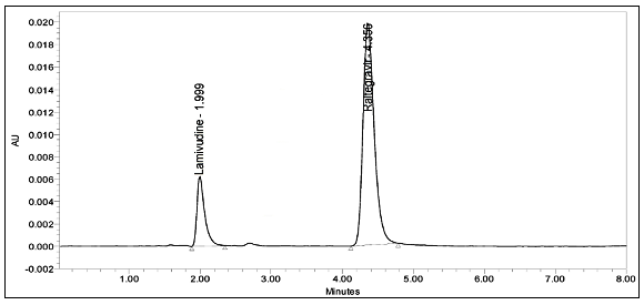 Conclusion: The proposed HPLC method was found to be simple, specific, precise, accurate, rapid and economical for simultaneous estimation of LAM and RAL in bulk and tablet dosage form. Thus the validated economical method was applied for forced degradation study of LAM and RAL tablet.