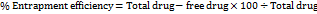 The freshly prepared nanosuspension was centrifuged at 20,000 rpm for 20 min at 5 °C temperature using cool ultracentrifuge. The amount of unincorporated drug was measured by taking the absorbance of the appropriately diluted 25 ml of supernatant solution at 268 nm using UV spectrophotometer against blank/control nanosuspensions. DEE was calculated by subtracting the amount of free drug in the supernatant from the initial amount of drug taken. The experiment was performed in triplicate for each batch, and the average was calculated [20]. The entrapment efficiency (EE %) could be achieved by the following equation 1: