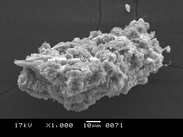 The topology of biopolymer isolated from Santalum album (White sandalwood) observed irregular, smooth, pletigranule surface topology with 10μm in size at 1,000 magnifications. This clearly indicates it is granular and polymeric in nature (fig. 3)