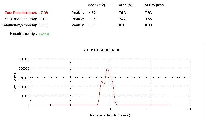 The electric charge present on the nanoparticles was evaluated by measuring the zeta potential as shown in fig. 6. Zeta potential of nanoparticles was-7.96 mV which indicates significant stability with no agglomeration.