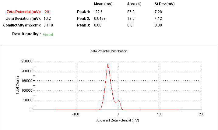 The prepared nanoparticles were subjected to particle size analysis, polydispersity index and zeta potential. The zeta potential, particle size and the size distribution of the fluvoxamine nanoparticle was measured using Malvern zeta sizer 2000, UK. The surface charge determination was performed using an aqueous dip cell in an automatic mode by placing diluted samples in the capillary measurement cell, and cell position was adjusted.