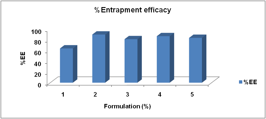 Fig. 10: % Entrapment efficacy of fluvoxamine bio-nanosuspension, mean of three observation±SD (n=3)