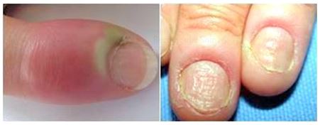 Fig. 2: Acute and chronic paronychia affected fingers [4]
