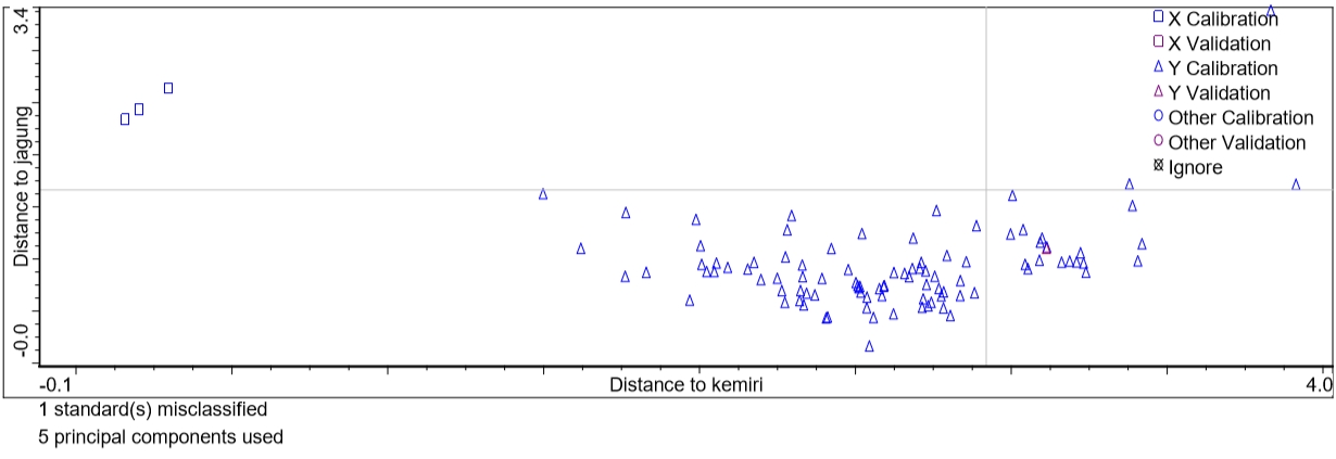 Conclusion: FTIR spectroscopy combined with chemometrics could be used as rapid and reliable method for authentication of candlenut oil (CnO) adulterated with other oils.