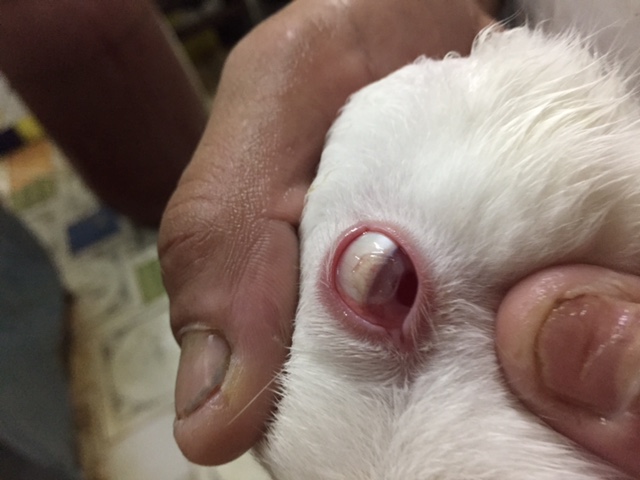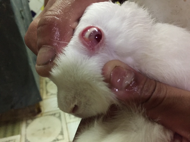 Fig. 9: Sequence of photos of in vivo experiment showing (a) before insertion of ocusert (b) during removal of ocusert (c) and after the complete dissolving of ocusert after 24 h