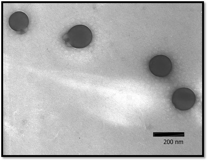 Fig. 1: Transmision electron microscopy of nanoparticles containing 95% (v/v) ethanolic extract of Javanese turmeric rhizome