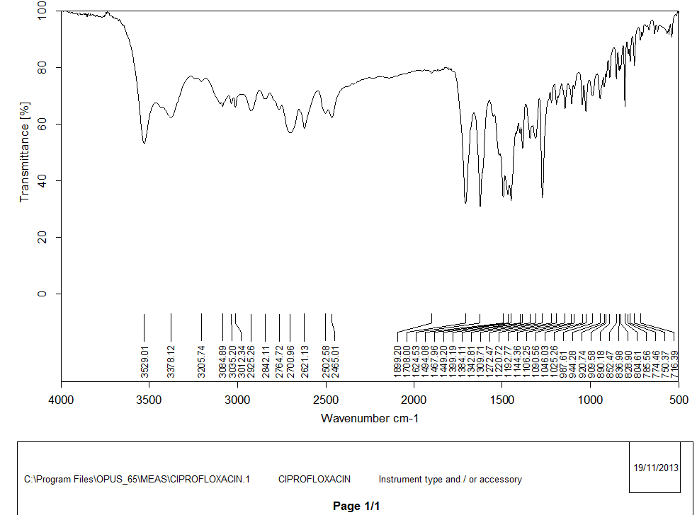 Fig. 1: FTIR spectra of ciprofloxacin