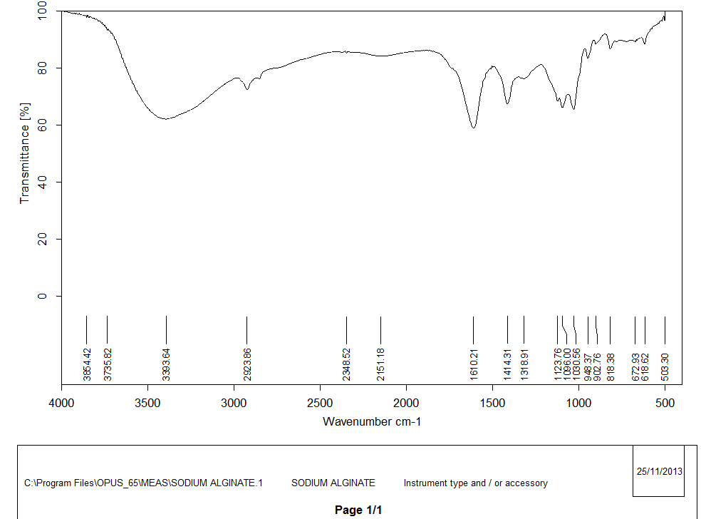 Fig. 2: FTIR spectra of sodium alginate