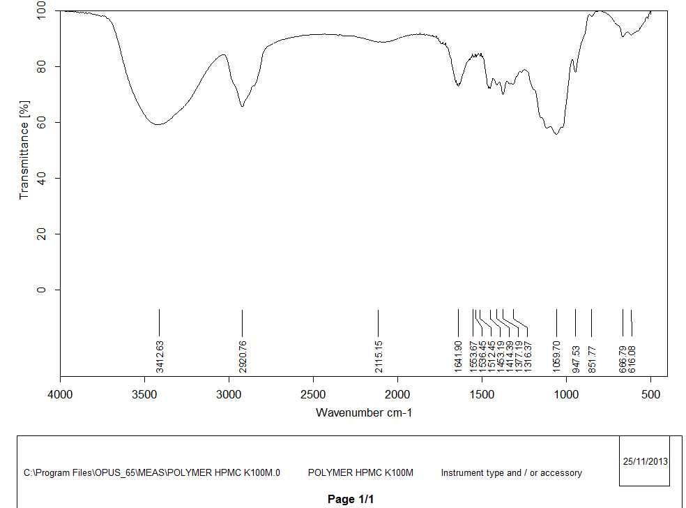 Fig. 3: FTIR spectra of HPMC K100M