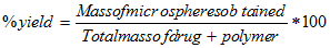 After drying the obtained microspheres were weighed accurately. The % yield was determined by using the following formula: