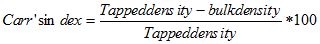 Indirect measurement of rheological properties like shape, size, surface area, moisture content and cohesiveness of materials is done by using Carr’s index. It is also known as Carr’s compressibility index (Ci).