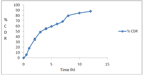 Fig. 4: In vitro drug release profile of optimized formulation (data represent mean±SD, where n=3). SD = standard deviation