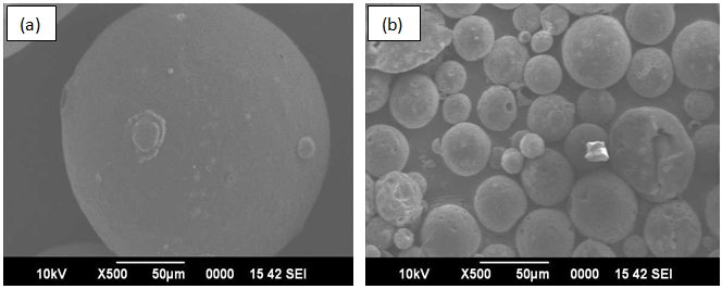 Scanning electron microscopy is an excellent tool to examine the shape and surface morphology of the microspheres. Prior to observation, the sample was placed on an adhesive stub. The SEM photograph was taken at a working distance of 15 mm; the acceleration voltage is 15 kV with secondary electron image (SEI) detector.