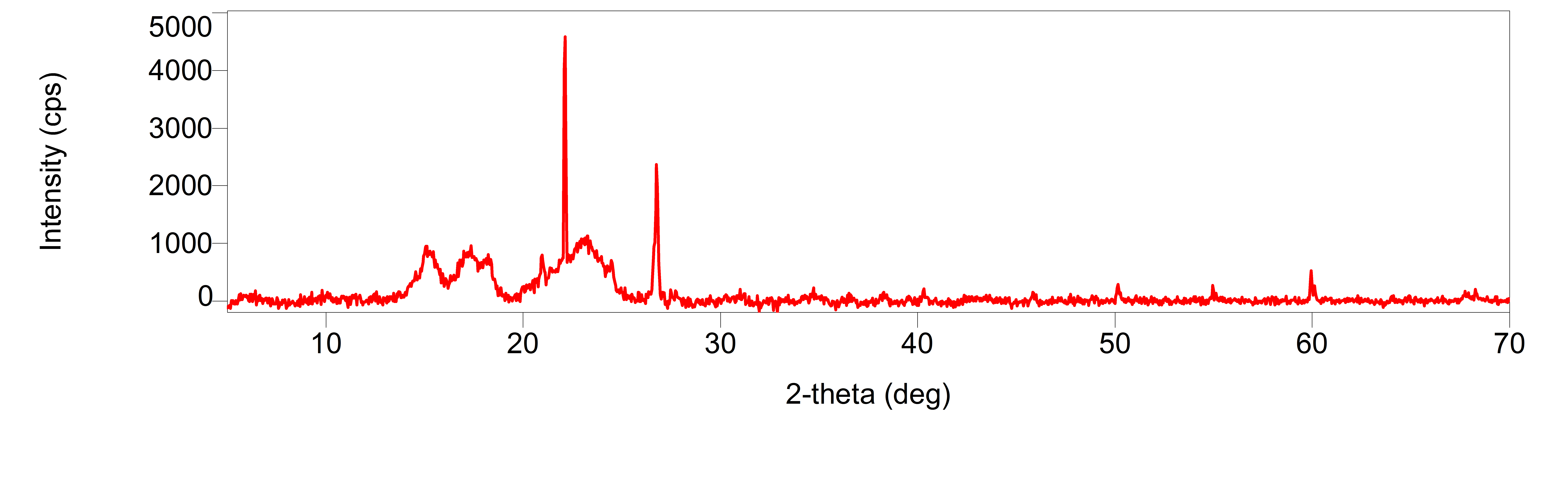 The X-RD pattern of the extract and the microspheres were obtained by X-ray diffractometer. The samples were irradiated with monochromatized X-ray (Cu K∞) with scanning rate of 2 ° min-1in the range of 5-70 °C (2Ɵ diffraction angle). The voltage was 40 kV and current 30mA.