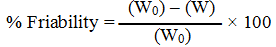 The friability test was achieved by placing 20 pre-weighed tablets in the friabilator (Vanguard-USA) which was then run for one hundred revolutions; the tablets were then dusted and reweighed. Tablets that lose a maximum of not more than 1% of their weight are generally considered acceptable [23]. Percentage friability was calculated from the following equation: