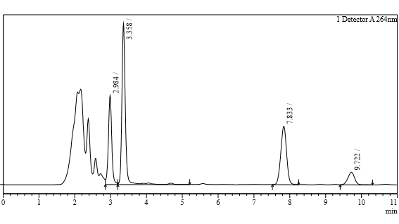 Method precision was determined by performing the analysis of the sample under the test of repeatability at working concentration. Three injections of the sample from the same homogenous mixture at working concentration showed % RSD less than 2 which indicates that the developed method is precise by the test of repeatability [16, 17].