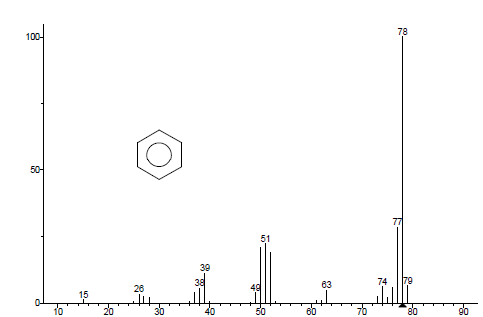 Specificity is the ability to assess the analyte unequivocally in the presence of other components that may be present in the mixture. These may typically include solvents, impurities, degradants, and matrix components, among others [29]. Thus, the specificity of our method was determined by examination of the interference. No interference was observed either from the blank or from all solvents. Furthermore, the solvent spiking results (i.e., with sample spiking) indicate that benzene and 1, 2-dichloroethane were not co-eluted with the other solvents. These results confirm the specificity/homogeneity of our developed method for the detection of benzene and 1, 2-dichloroethane. This was also confirmed by GC-MS, and the mass spectra are given in fig. 5 and 6.