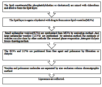 The liposomes are prepared by the various method. The lipid vesicles can be prepared by standard techniques like sonication and extrusion. They can also be synthesised from reversed phase evaporation, detergent dialysis and freeze–thawing. After various steps involved in the synthesis of liposome (fig. 3) the polaxamer molecules are incorporated into it to form the Cryptosomes.