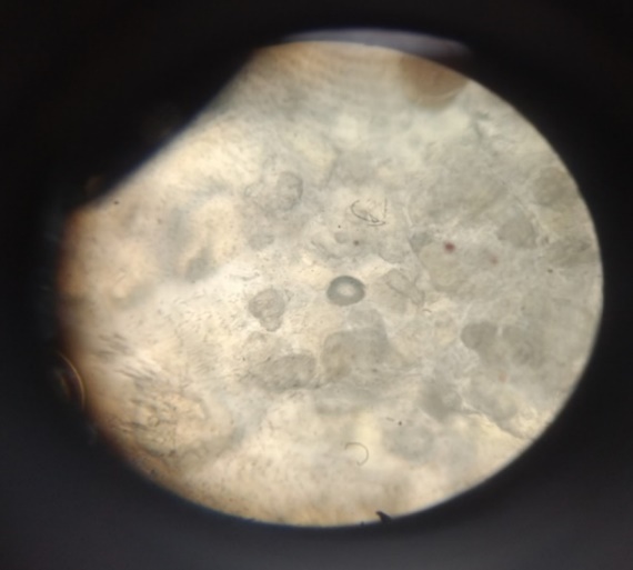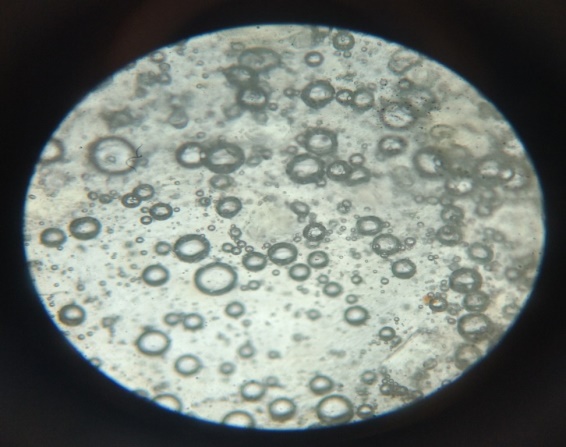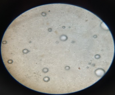 The preparation with clear liquid crystalline state yielded niosomal suspension upon hydration; the same was mounted on a glass slide and examined for vesicles using a compound microscope under 100X magnification, magnified images were captured.