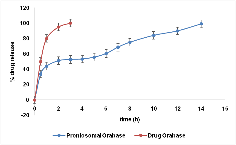 Fig.4: In vitro release profiles of proniosomal and drug orabasedata expressed mean