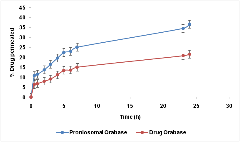 Fig.5: Ex-vivo permeation profiles of proniosomal and drug orabasedata expressed mean