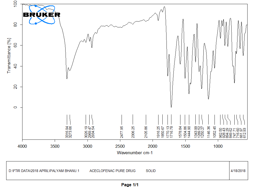 Table 2: FTIR bands of aceclofenac, proniosomal orabase and drug orabase