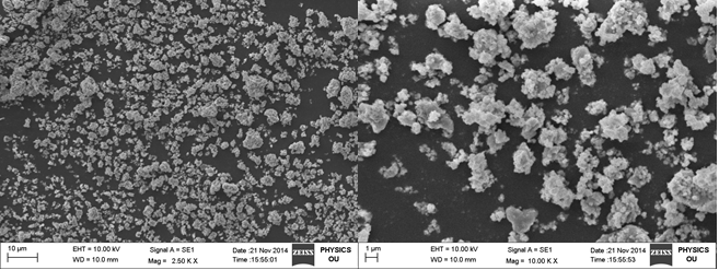 The crystal structure of the sample was analyzed by means of XRD-6100 diffractometer (Shimadzu), and the patterns were recorded with Copper Kα radiation (λ=1.54060 A °). Molecular analysis of the samples was performed by Fourier transform infrared (FT-IR) spectroscopy using IR Affinity-1S (Shimadzu) spectrometer, recorded in the wave number range of 400–4,000 cm-1. The maximum optical absorption of the sample was characterized by UV-Visible Spectroscopy (JASCO V 670), in the range of 200-800 nm. Morphological study of the nanoparticles was carried out with scanning electron microscope (SEM) (EVO 18 carlzeiss).