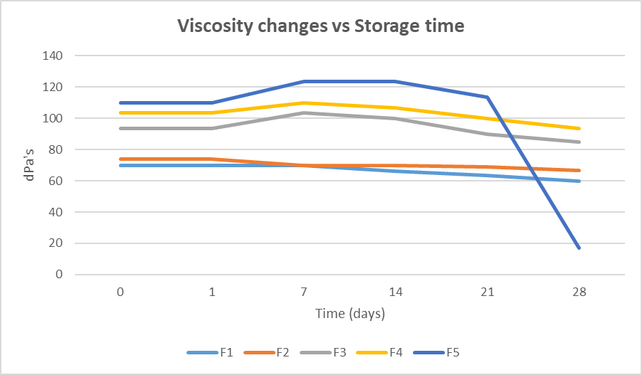 Fig. 2: Viscosity changes against storage time