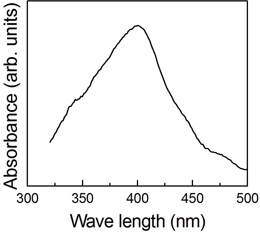 UV–visible absorption spectrum as showed in fig. 3, is carried out to evaluate the potential optical properties of the as-prepared zinc oxide nanoparticles using parthenium hysterophorous plant extract. For the UV–visible absorption measurement, the as-prepared zinc oxide nanoparticles using parthenium hysterophorous plant extract sample is ultrasonically dispersed in absolute ethanol before the examination, using absolute ethanol as the reference. The spectrum was corrected for the solvent contribution. The absorption spectrum of zinc oxide nanoparticles using parthenium hysterophorous plant extract shows well-defined excitation band at ~ 401.5 nm, which is shifted by ~28 nm relative to the bulk zinc oxide excitation absorption [14] higher than that of the bulk zinc oxide excitation band (~373.5 nm). The calculated band gap of ~3.09 eV of these nanoparticles is less than that of the band gap of bulk zinc oxide (3.3 eV). The reason for the shifting of the absorption band could be due to the oriented attachment of the nanoparticles by using parthenium extract may lead to defect formation in these zinc oxide nanoparticles. Similar observations for shifting of absorption bands of zinc oxide towards the visible region were also reported earlier [15]. Surface area and surface defects play an important role in the photocatalytic activities of metal oxides. Additionally, it affects the optical and electronic properties due to which the optical absorption shifts towards the visible region. For the effective use of zinc oxide, band gap has to be minimized from 3.38 eV to below 2.0 eV, since it is the recommended band gap value for achieving a visible-light active photocatalyst [16].