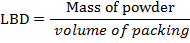 Where TBD= Tapped bulk density; LBD= Loose bulk density.