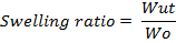 where Wut is the weight of uptaken water at time t and Wo is the initial weight of the dry tablet [11].