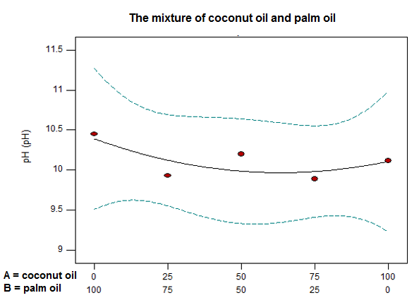 Coconut oil (A) and palm oil (B) contributed pH value positively, but its interaction (AB) affected pH values negatively. Fig. 2 exhibited SLD response of pH.