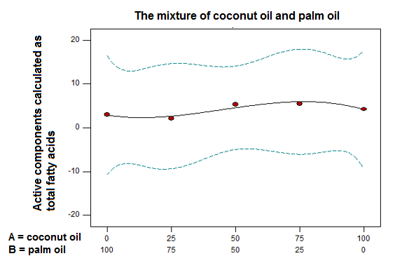 Fig. 3 showed SLD response of total fatty acids using the different proportion of coconut oil and palm oil.