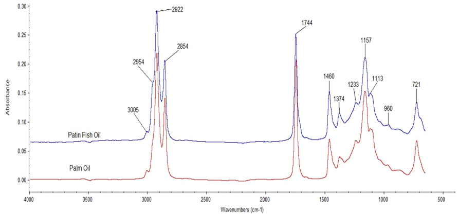 Table 1: Vibration of functional groups in patin fish oil (PFO) and palm oil at certain wavenumbers [20]