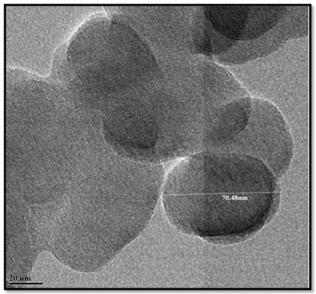 The TEM study of optimized paclitaxel SLN illustrated the spherical shape of nanoparticles. The TEM image of the nanoparticles is depicted in fig. No. 4 It is evident from the image that the particles were spherical in shape with narrow size distribution and no aggregation. Particles of optimized paclitaxel SLN formulation were of nanosize. The surface of particles is smooth moreover their integrity was found to be intact.