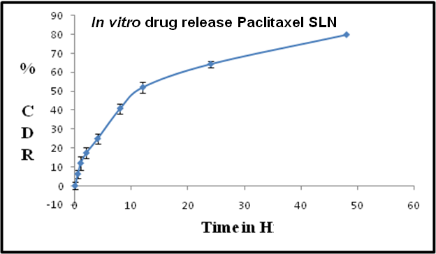 The in vitro release study of optimized paclitaxel SLN was performed using a dialysis bag approach in PBS pH 7.4. The data of the in vitro drug release was used in different kinetic release pattern and the in vitro kinetic profile is tabulated in table 5.
