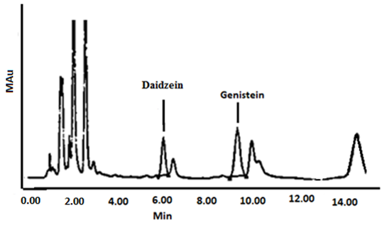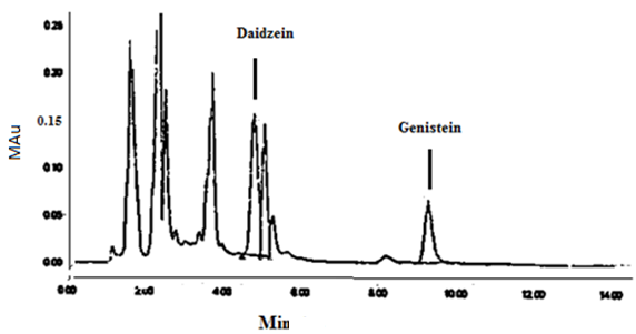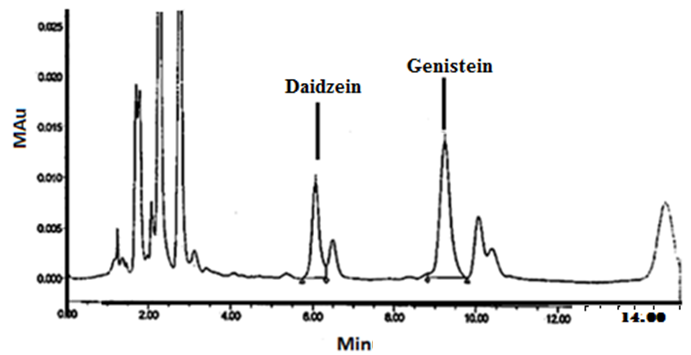 Conclusion: A simple, accurate, precise and being specific HPLC method coupled to PDA for the analysis of daidzein and genistein in various soybeans varieties were developed and validated.