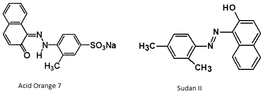 Dyes is the most important additive component in cosmetics industry to improve personal appearance [1]. Acid orange 7 (AO7) and sudan II (fig. 1) are azo dyes. AO7 is allowed in cosmetics product except if it was used around eyes. Sudan II (SII) is a forbidden dyes. Because of its similarity colour, AO7 is often replaced by sudan II [2]. AO7 and SII are harmful for longterm use [3, 4]. Therefore, analytical methods for analysing AO7 and SII must be developed in order to ensure the cosmetic safety.